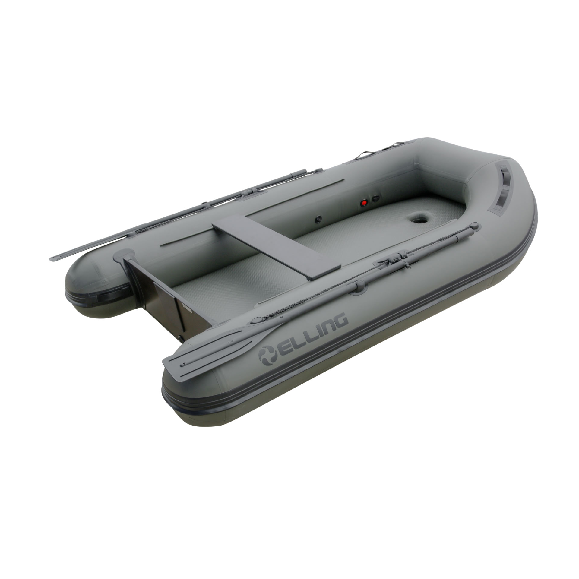 The Elling XCAT 270 inflatable boat is the flagship of stability for demanding anglers. With a 270cm length and superior 170cm width, it provides immense internal space for two people and their gear. The high-pressure AIR floor combined with a keel ensures excellent tracking and rigidity. Built from durable 1100 g/m² PVC with welded seams and extra-large 42cm tubes, it is one of the safest boats in its class.