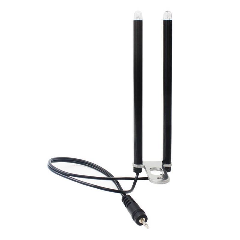 The FLACARP EARS2 illuminated ears in blue combine mechanical rod protection with advanced visual signaling. They prevent the rod from jumping out of the alarm during aggressive runs, while also featuring top-mounted LED diodes. When connected to the alarm via a 2.5mm Jack, they light up during a take, providing perfect visibility at night. The sleek silver base adds a premium touch to your setup.