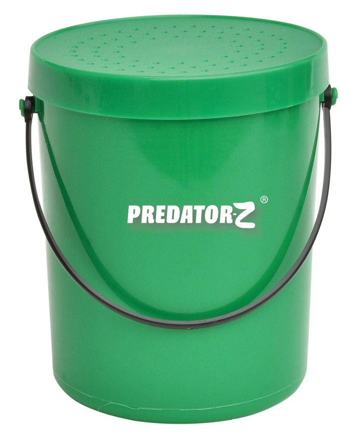 Classic plastic bucket for storing and transporting live bait (maggots, worms). Lid is perforated for air flow but escape-proof. Lid seals tightly.