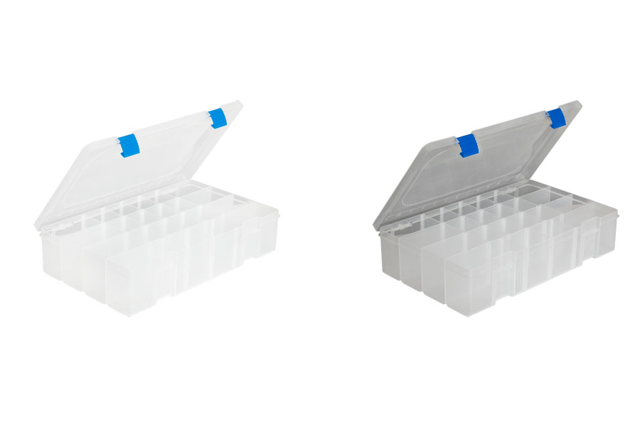 Large and especially deep (8 cm) storage box for fishing tackle. Greater depth allows storing bulkier items like floats, feeders, line spools, or pliers. Durable plastic and reliable latch.