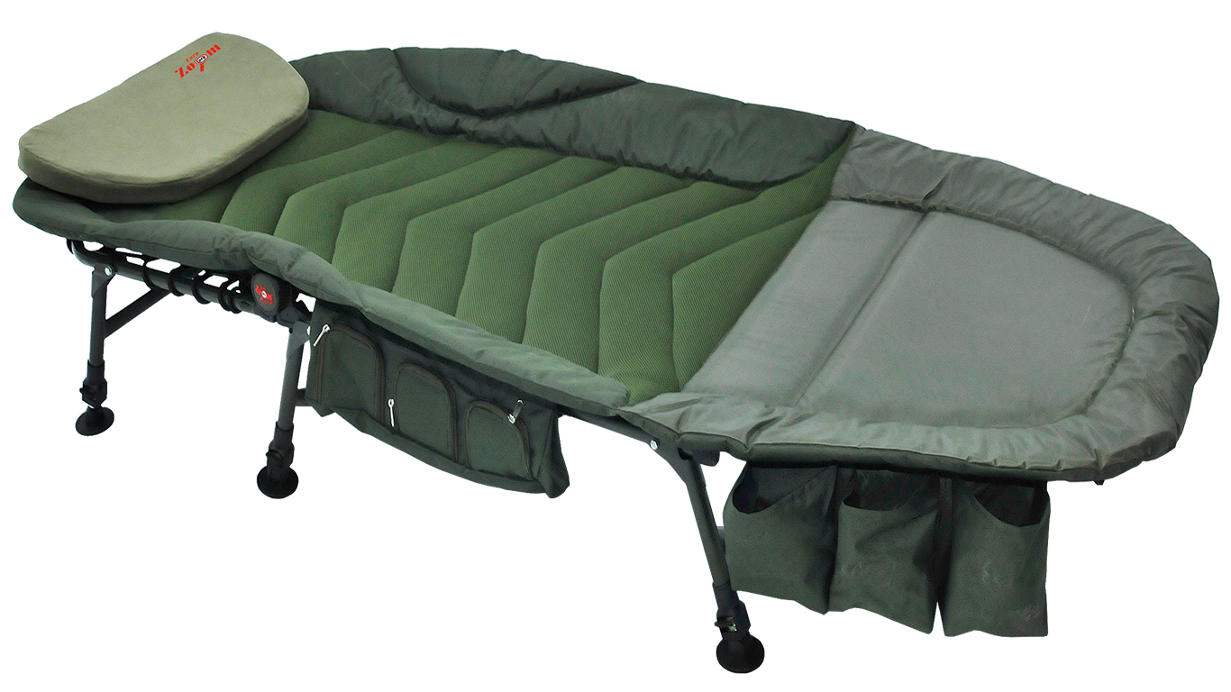 Sleep like a king by the water. This bedchair combines maximum comfort with functionality. Heavily padded mattress with warm fleece center and integrated pillow protects you from ground cold. The steel frame is lightweight yet extremely strong.