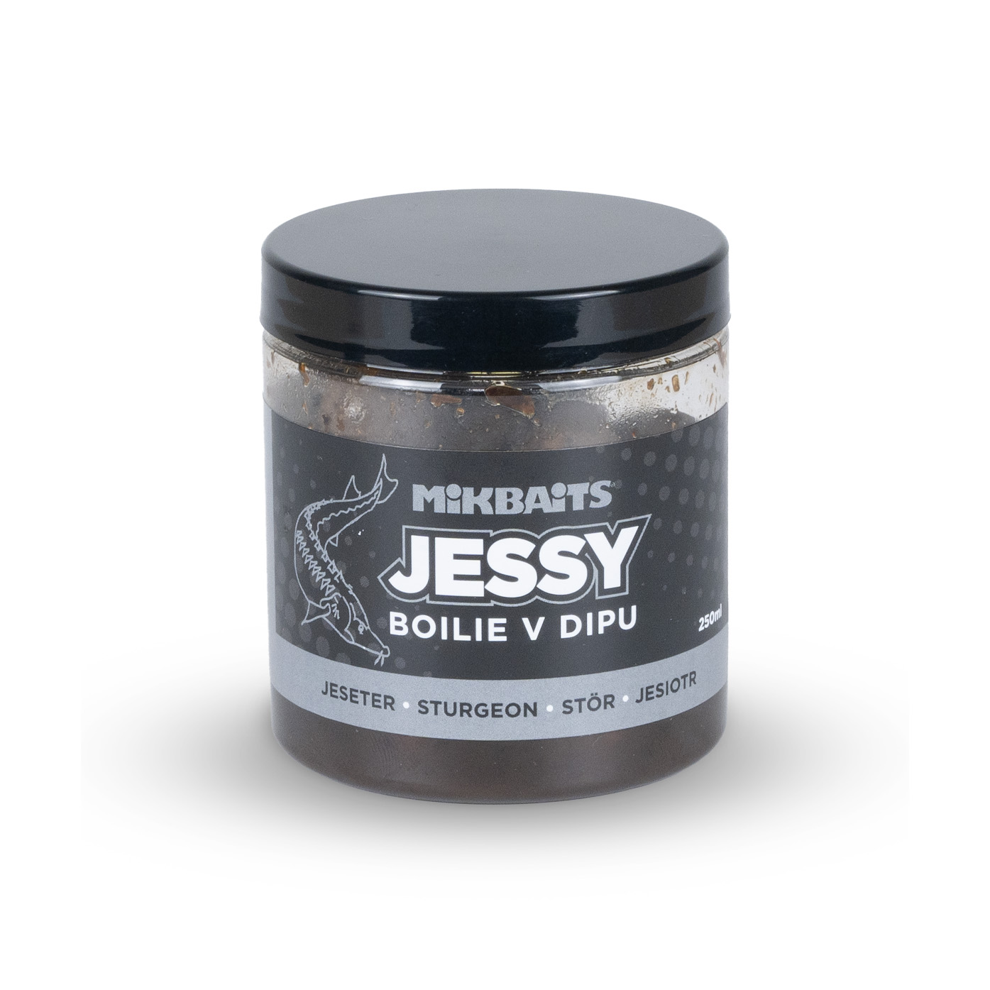 The Mikbaits Jessy boilies in dip are an uncompromising hookbait specifically developed pro sturgeon fishing. This range features an intense meaty-fishy base enriched with a unique cheese flavor and select spices. Pre-soaked in a high-attract dip, they ensure immediate and long-lasting signal release. While targeted at sturgeon, their profile is also a magnet pro specimen carp and catfish.