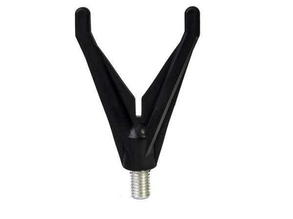 Solid plastic rod rest designed for the front part of a bankstick or rod pod. The V-shape with a line groove allows smooth line flow during a bite.