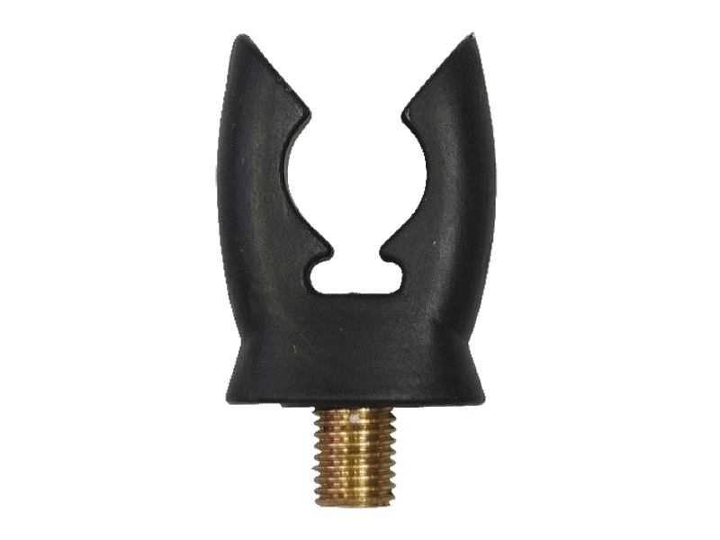This rear rod rest is made of flexible yet strong rubber. Its main advantage is high grip (non-slip). During violent takes or when fishing at steep angles ("tips up"), the rubber firmly holds the rod handle and prevents slipping.