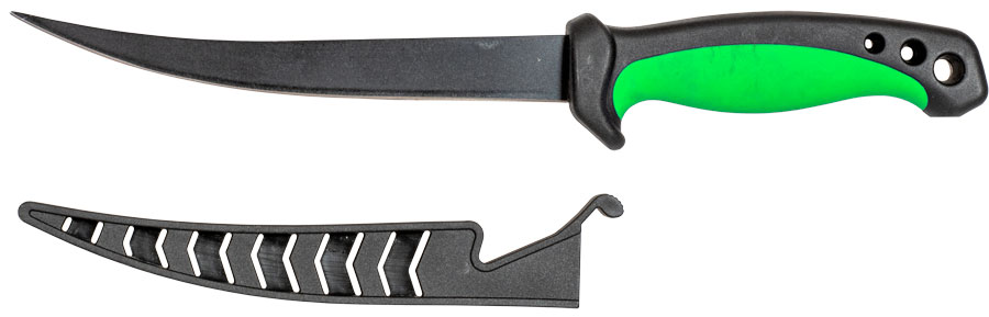 Professional filleting knife designed for precise catch processing. Features a thin and flexible blade (16.5 cm) made of high-quality stainless steel, allowing easy separation of meat from bone and skin. The blade has a special non-stick coating ensuring clean, smooth cuts without meat sticking.