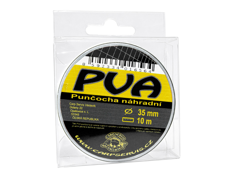 High-quality replacement PVA mesh in wider 35 mm (Wide) diameter. Made in EU from fine threads ensuring strength during filling and perfect solubility in water, even in winter. Pack contains 10 meters.