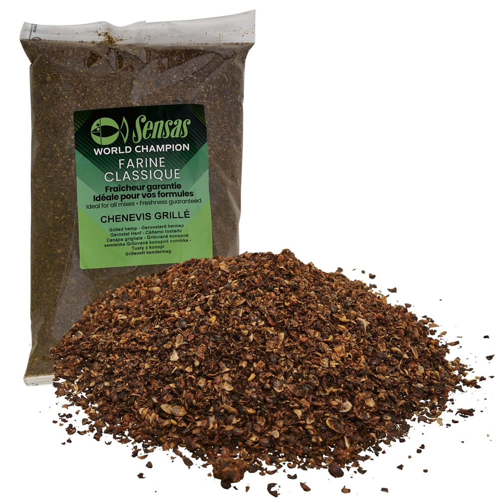 Premium Sensas Chenevis Grille 700g roasted hemp with intense nutty aroma and high oil content. Instantly stimulates fish metabolism and acts as a reliable magnet for roach and bream in any terrain.