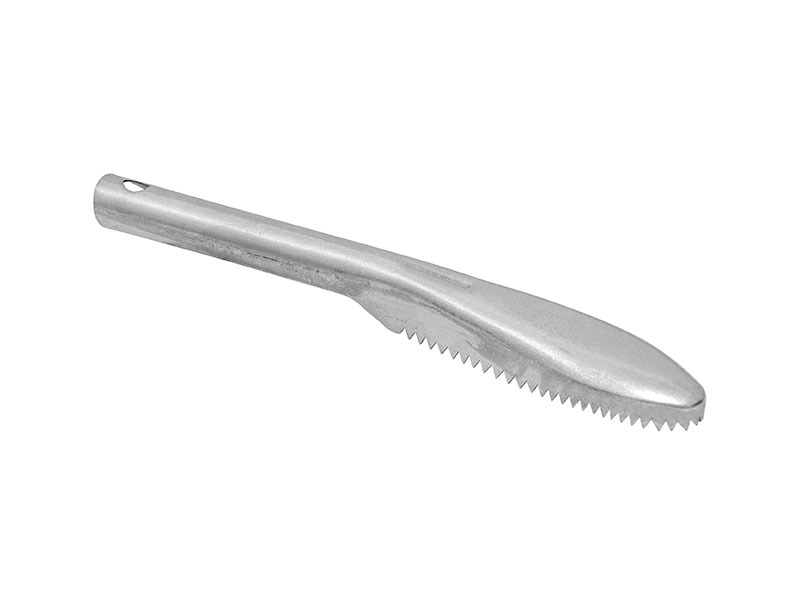 Practical tool for quick and easy scale removal. Special serrated stainless steel head effectively lifts and removes scales without damaging the meat. Ergonomic handle and easy to clean.