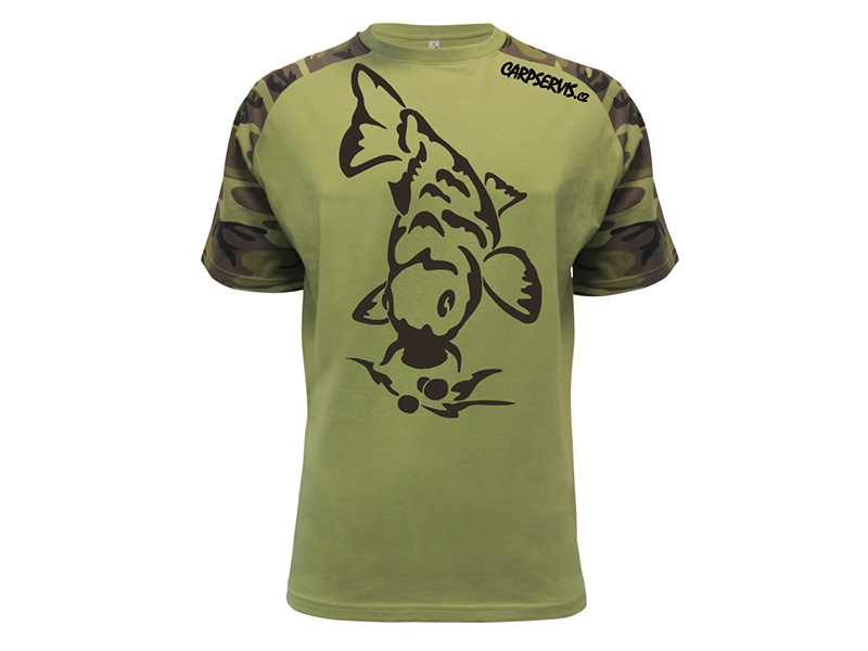 Stylish short-sleeved fishing t-shirt in popular military green. Made of 100% cotton, ensuring comfort and breathability even on warm days. Features a high-quality carp print on the back, logo on the sleeve, and a smaller motif on the chest. Ideal for brand fans.