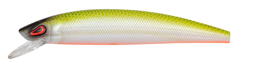 Slender floating wobbler perfectly mimicking a bleak in shape and movement. Designed for fishing in the upper water layer. The Fluo Green/White variant is excellent for murky water or irritating active fish.