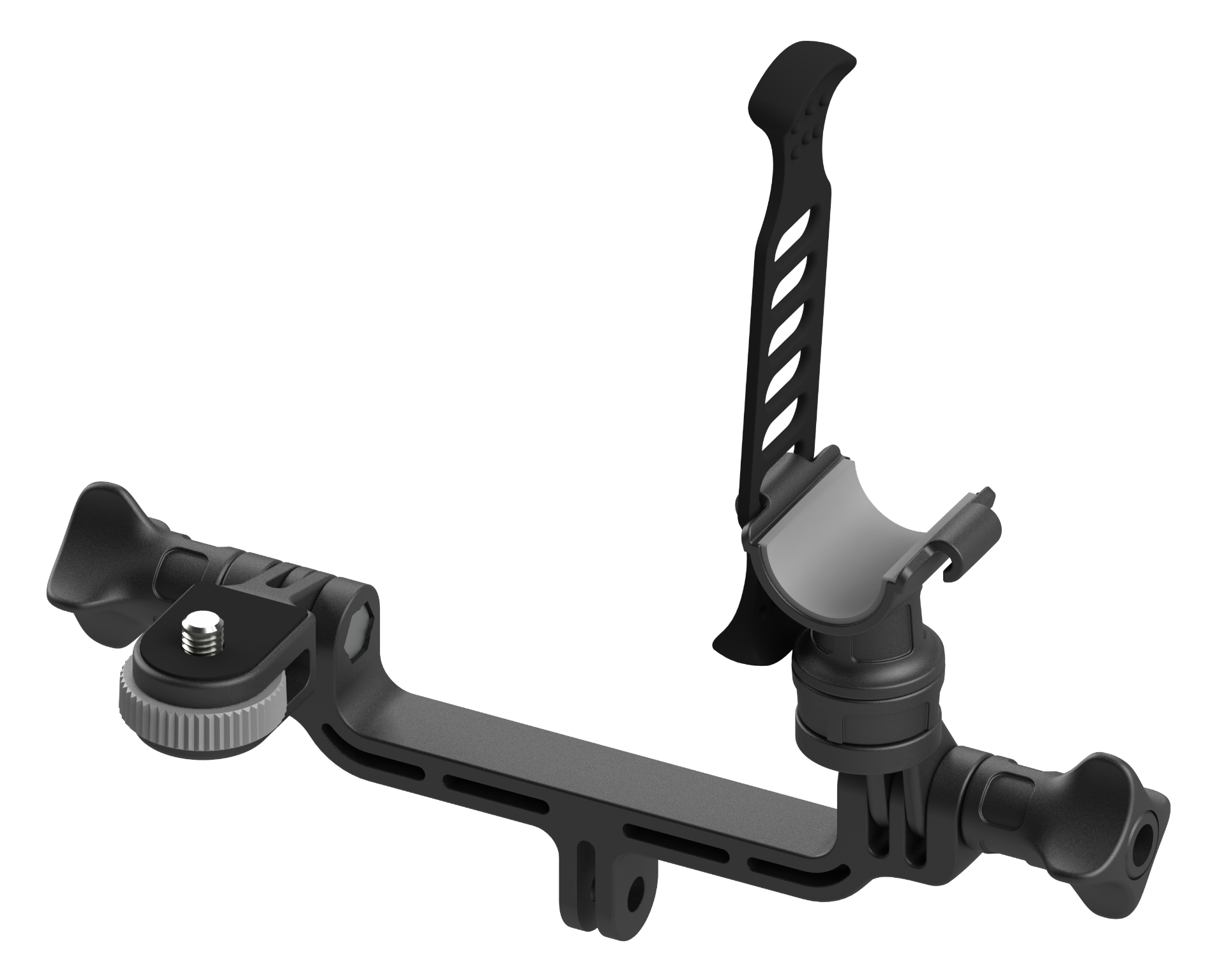 Ce support est le maître de l'équipement multimédia embarqué. Filmez sous deux angles ou éclairez votre prise de nuit pendant que la caméra tourne. Ses rotules de précision garantissent une stabilité totale face aux vagues. L'outil pro pro les créateurs de contenu exigeant sécurité et modularité.